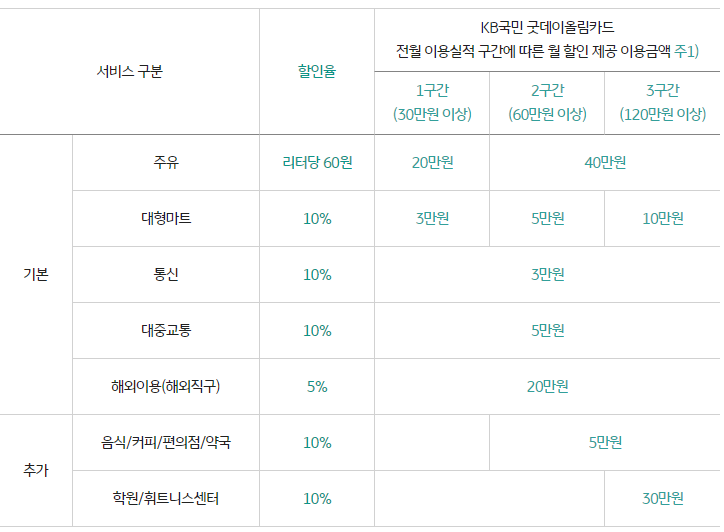 개인적으로 눈여겨 보고 있는 카드는 바로 국민카드의 굿데이카드입니다. 올림카드가 연회비가 1만원 비싸지만 혜택이 더 다양해서 굿데이 올림카드 연회비 20,000원을 기준으로 비교해봅니다.