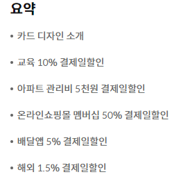 카드사 순서는 혜택의 순서가 아니라, 무작위입니다.  카드명과 주요 혜택, 연회비정도로 비교해보고 선택해 보려고 합니다. 링크를 클릭하면 바로 가능하십니다.