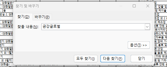 임의로 눈에 보이는 업체명을 넣어보았는데요. Ctrl+F를 누르면 찾기 대화창이 나옵니다. 거기에 본인이 재직중인 회사를 눌러서 해당 셀로 가셔서 주소 및 연락처를 확인해 보신 후에  목록에서 확인이 되시면 대상이 되시는 거예요.