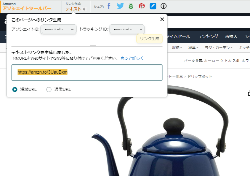 요렇게 평상시에 쇼핑을 하는 아마존 사이트에 툴바가 있어서 매우 쉽게 링크를 생성할 수 있어요.