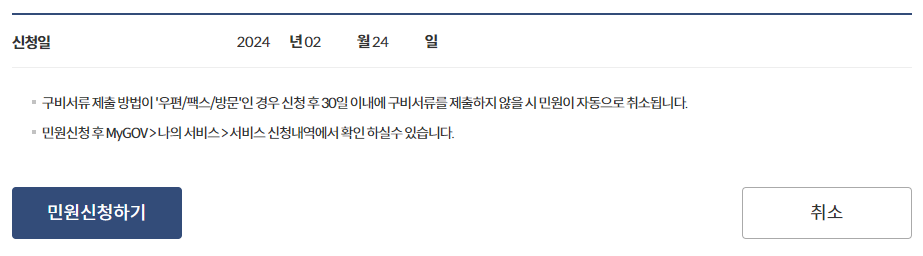 모두 작성을 하고, 건강기능식품영업신고증을 첨부하여 민원신청하기를 누르니,
