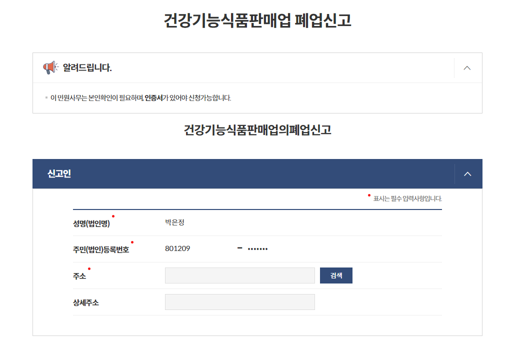 건강기능식품이나 수입식품의 경우는 인터넷으로 간단하게 신청이 가능했지만, 화장품 책임판매업의 경우에는 등기우편으로만 폐업신청이 가능하다고 합니다.